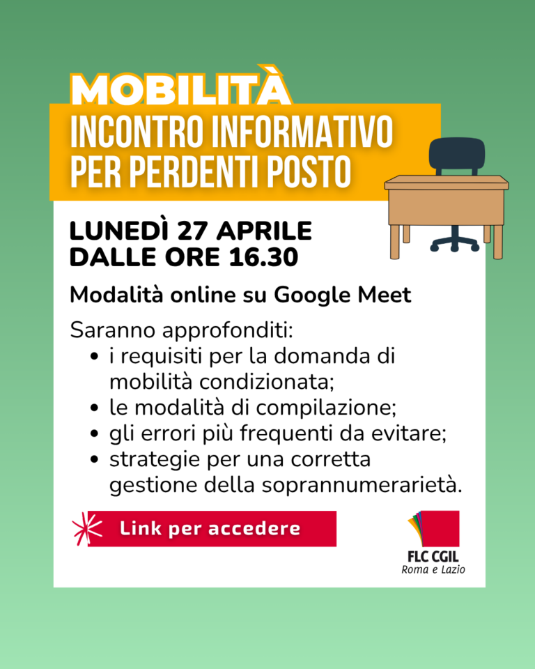 27 APRILE: INCONTRO ONLINE DOCENTI SOPRANNUMERARI – FLC CGIL
